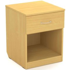 Прикроватная открытая тумба с ящиком Гм.ТП-2 Альтерна серии Проспект имеет открытую конструкцию нижней части и выдвижной ящик для личных вещей. Тумба комплектуется нерегулируемыми опорами.