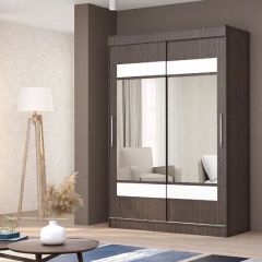Шкаф-купе "Лига №3" 1,5 м имеет широкую секцию, оборудованную штангой для вешалок, несколько полок для одежды и белья, два выдвижных ящика для мелких предметов. Фасады шкафа декорированы зеркальными накладками .